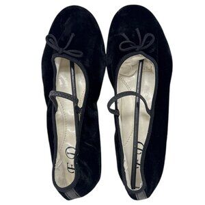 FD Flower Girl Design Black Velvet Ballet Flats with Bow & Elastic Strap