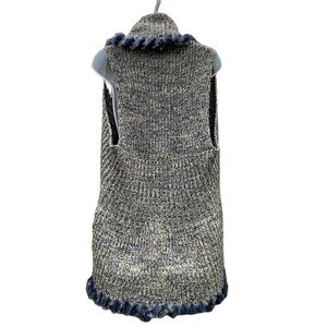 FDJ French Dressing Jeans Blue Gray Marled Knitted Vest Rabbit Fur Trim S / M