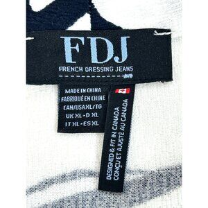 FDJ French Dressing Jeans Tunic Top XL White Navy Abstract Pattern Swirls Artsy
