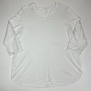 FDJ French Dressing Jeans Women V-Neck 3/4 Sleeve Tunic Top White Lagenlook L ?