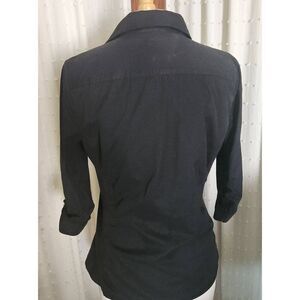 ▪︎DESCRIPTION: Super soft black shirt with silver buttons down the front and on the sleeves. The sides have stretch fabric.