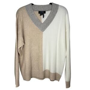 FDJ Oatmix Color Block Long Sleeve V-Neck Sweater Women's Medium