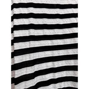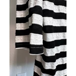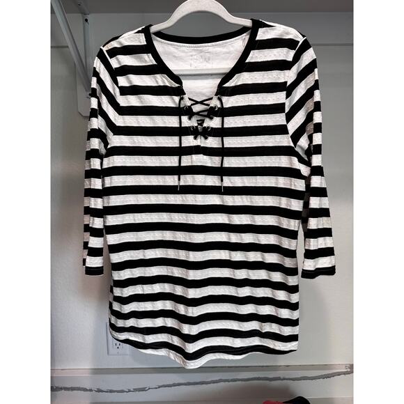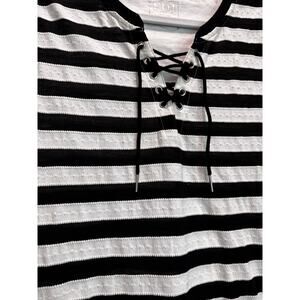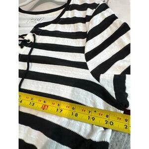 FDJ Women's 3/4 Sleeve Striped Blouse Tie Up Black White Size Large