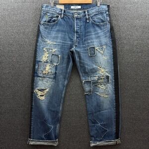 FDMTL Jeans Mens 36x32 Blue Classic Distressed Patchwork Selvedge Denim Japan