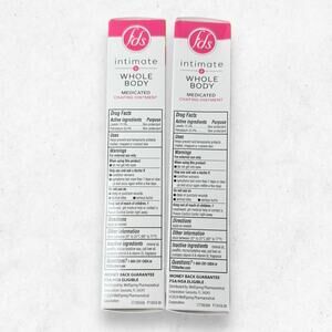 This FDS Intimate Whole Body Medicated Chafing Ointment set includes two 1.5 oz tubes, both new and sealed. Designed to help soothe and protect skin while providing odor control, suitable for daily comfort and freshness.