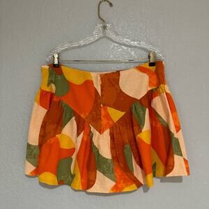 FE NOEL X TARGET Mixed Paint Print Linen Blend Mini Skirt Size 16 Orange/Brown