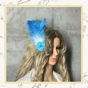 🍒 FEATHER HAIR PIECE FASCINATOR FLOWER BOHO BURLESQUE DANCER BLING PERFORMER