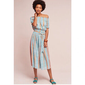 FEATHERBONE by ANTHROPOLOGIE Demetria Off the Shoulder Top in Orange Motif