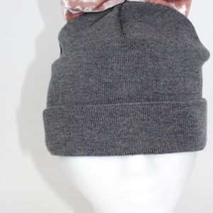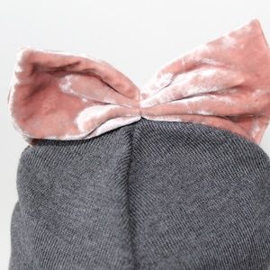 Gray and pink bow embroidered beanie hat from Federica Moretti.