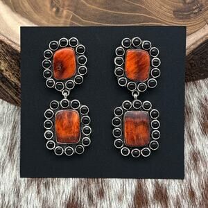 FEDERICO JIMENEZ Sterling Silver Orange Spiny & Onyx Cluster Dangle Earrings