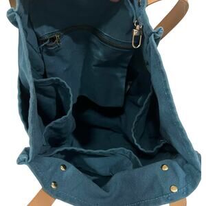 FEED Project Canvas Market Tote Shoulder Bag Blue with Leather Straps