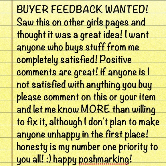 @jpearce95 @adawson128 @nvala @thebirdlady would love for your guys to take a minute and leave your feedback on your new product and how I did! I would really appreciate it! If not that's fine also :) thank you all again for buying and helping me clear my closet(s) any returning customer will get a free gift :)