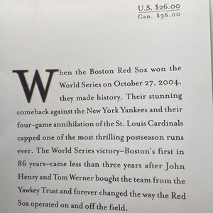 An inside account about how the Boston Red Sox rose from a reputedly "cursed" team to World Series champions documents such topics as the 2001 sale of the team, recent player trades and acquisitions, and plans for the next decade. By the author of Hard News.