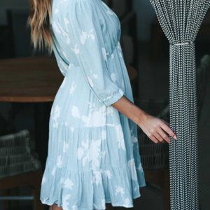 FEHRNVI Juniper Dress Size Large. Flowy and flirty, this floral mini dress has a comfortable elastic waist and 3/4 sleeve cuffs. The v-neck details make it nursing friendly. Bump friendly.