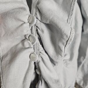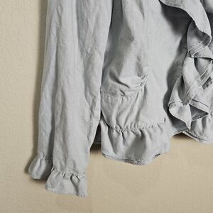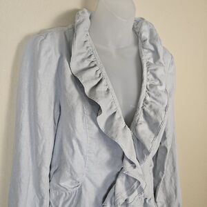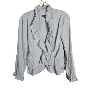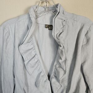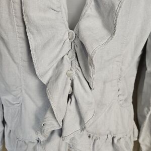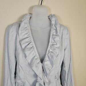 FEI Anthropologie Linen Jacket Blazer Size 8 Ruffle Lightweight Designer Coastal