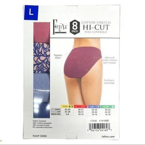 FELINA 8 Pack Hi Cut Cotton Stretch Full Coverage Panties - NEW