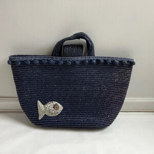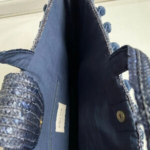 FELIX REY Blue Woven With Pom Pom Sequin’s Beach Large Tote