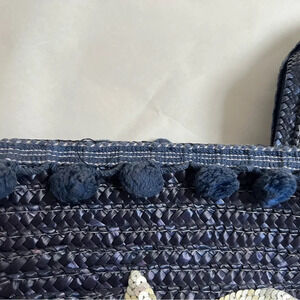 FELIX REY Blue Woven With Pom Pom Sequin’s Beach Large Tote Beach Straw