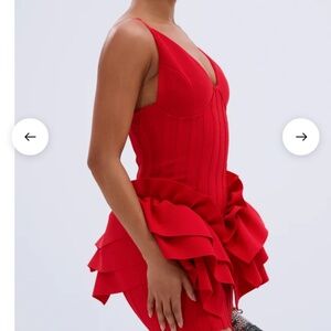 Turn heads in the Felt Cute Ruffle Bandage Mini Dress, designed in a curve-contouring bandage knit for a sculpted silhouette. Featuring a plunging neckline, adjustable straps, and an exposed gold back