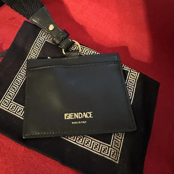 FENDACE Fendi x Versace LANYARD Cardholder Black Leather Card Holder