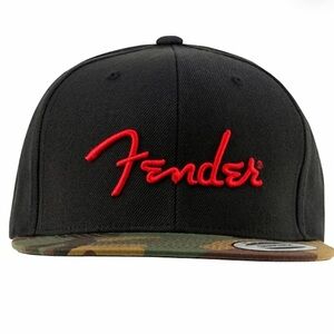 FENDER Black Flatbill Hat with Red Logo and Camouflage Brim Unisex NWT