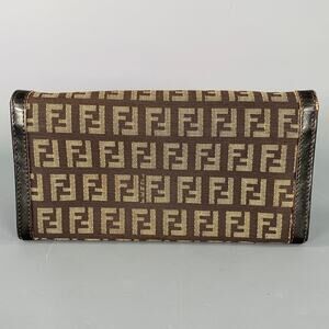 FENDI 2009 Foglio Forever Brown Yellow Monogram Fabric Leather Wallet