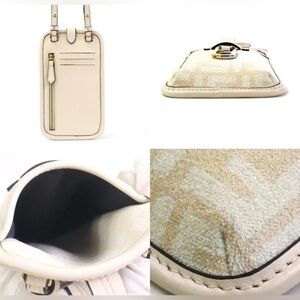 The Fendi Phone Pouch Orlock Shoulder Bag is a versatile accessory designed for practicality and style. Made from a combination of viscose and leather, this bag features a Neutral Colored Zucca pattern and is equipped with a secure lock outer pocket. It can be used as a pochette, pouch, or shoulder bag, making it suitable for various occasions