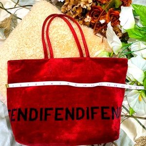This FENDI TOTE BAG is definitely a crowd pleasing attention seeker ❤️🖤 From it’s velour texture to it’s fendi logo throughout 🔙 in good used condition & ready for some fun‼️