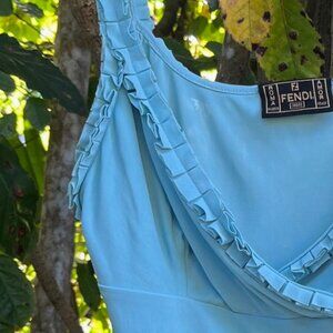 FENDI Aqua Blue Ruffle Strap Blouse – Made in Italy (Size 10)