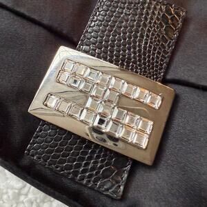 FENDI Baguette Black Silk Satin Lizard Leather Crystal Exotic Skin EUC Y2K