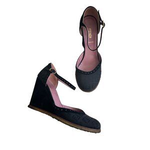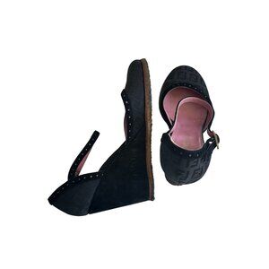 FENDI Black Vintage Logo Sandals Wedges Size 38