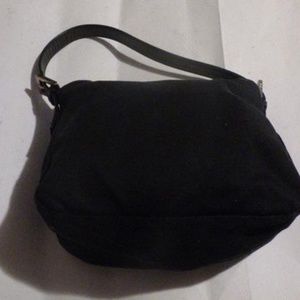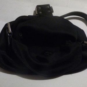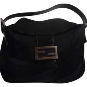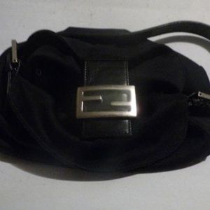 For sale is an amazing, Fendi, hobo style, black wool/spandex blend fabric and leather, envelope top, shoulder purse with chrome hardware and a double flap top closure! The bag is a medium, classic, shoulder style purse in a black fabric that feels like a wool blend some spandex. Wear and aging consistent with used vintage item. Please see photos for more details. All measurements are approximate. Strap: 8" adjustable; Serial #2305.126426.008. 10"L x 5"W x 10"H. Item #: 20212129.