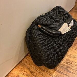 FENDI Borderline Clutch in Black Pleated Satin with Gold and Silver Kiss Lock