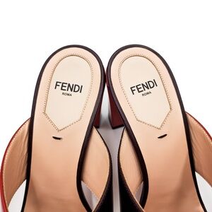 FENDI Brown Nappa Leather Floral Slip-On Heels Designer Mules Shoes EU 38