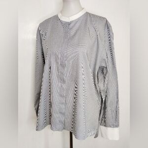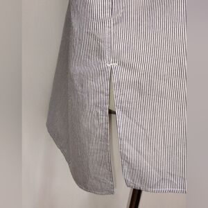 Elevated luxury designed in a sleek navy and white pinstripe cotton