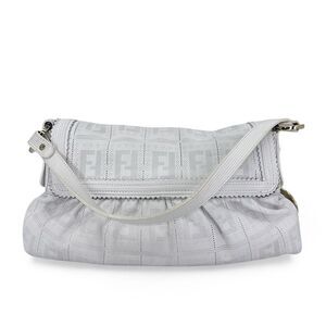 FENDI Chef Hobo White Perforated FF Zucca Logo Calfskin Small Shoulder B…
