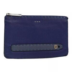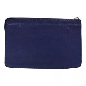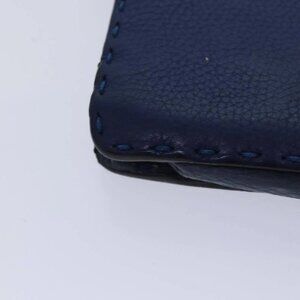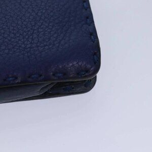 FENDI Clutch Bag Leather Blue Silver Auth bs17465