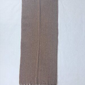 FENDI Cravatte Solid Logo Brushed Woven Cashmere Fringe Brown Rectangle SCARF