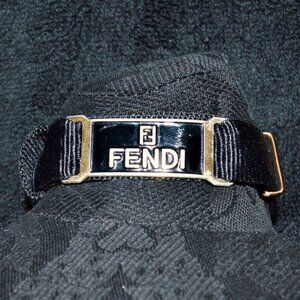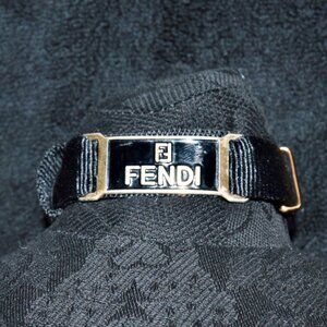 FENDI FF AUTHENTIC VINTAGE PLACQUE GOLD TONE ON BLACK ENAMEL BRACELET