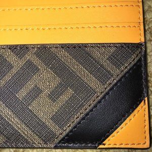 FENDI 'FF Logo w/ Orange Detail' Authentic Men's Canvas/Leather Card Holder NWT!