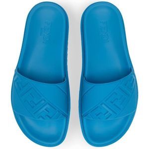 Textured Fendi motifs mark the straps of bright, bold sliders on razor-lug soles.