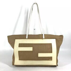 FENDI FF logo Big logo Tote Bag Shoulder Bag Canvas / rubber Beige/White