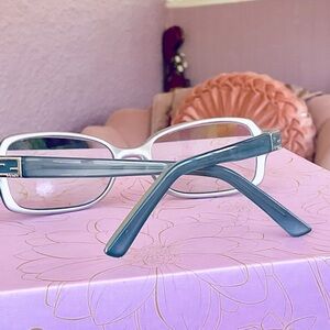 BLUE/GREY FRAME WITH CONTRASTING SILVER COLOR INNER FRAME.