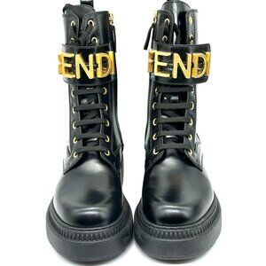 FENDI Fendigraphy Graphy Signature Logo Cuff Leather Biker Combat Boots