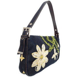 FENDI Flower Denim Mamma Bucket Handbag Includes a Certificate of Authenticity!