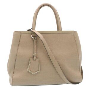 FENDI Hand Bag Leather 2way Shoulder Bag Gray Auth am2118g