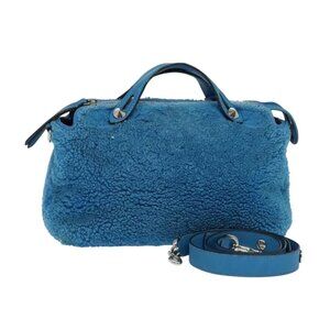 FENDI Hand Bag Mouton 2way Blue Silver Auth
