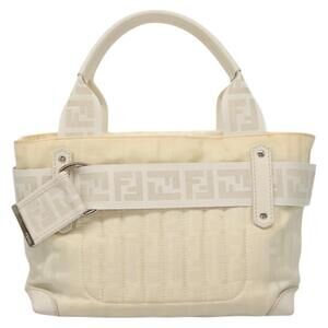 FENDI Hand Bag Nylon White Silver