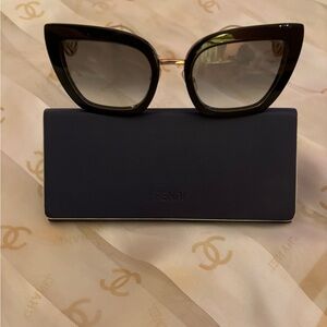 GUARANTEED AUTHENTIC FENDI LARGE FRAME CAT EYE SUNGLASSES. I BOUGHT THESE NOT REALIZING THEY ARE TOO LARGE FOR MY FACE.