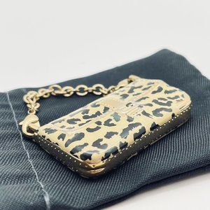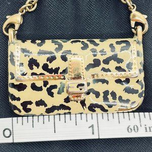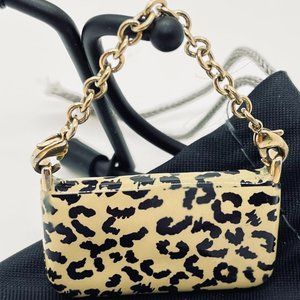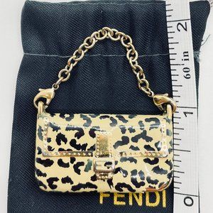 FENDI Leopard Print Enamel and Gold Mini-Purse Charm with Dustbag